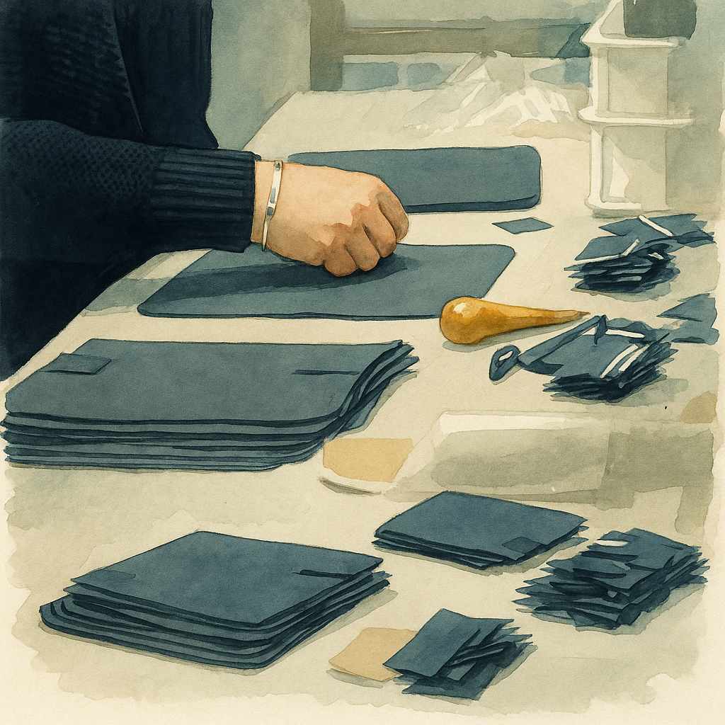 Notre atelier associe gestes traditionnels, maîtrise industrielle et passion du cuir.